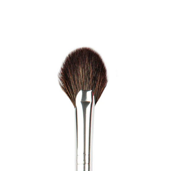 Šikovný, stredne veľký štetec typu „vejár” určený na nanášanie rozjasňovača alebo jemného nádechu ružovej farby na líca.